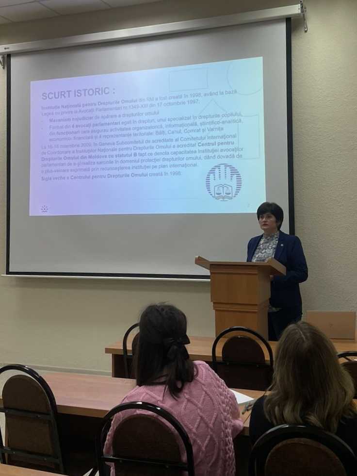 La data de 9 noiembrie 2023, la invitația Departamentului Drept Procedural al Facultății de Drept al Universității de Stat, reprezentanta Oficiului Avocatului Poporului a desfășurat o prelegere asupra activității, misiunii și rolului instituției Ombudsmanului.